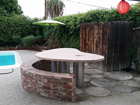 Don't let 1963 prevent you from checking this one out; its truly special. This home has a very contemporary feel from the front door all the way through. You have to see the stained concrete countertops in this updated kitchen. Even the little red tile backsplash is special. Use the room off the kitchen as either a family room or an enormous dining room. This home has a true FORMAL living room. The wall to wall built in cabinetry could have 100's of uses. You can even close it off for additional privacy and silence. Pay extra attention to the other upgrades; security glass windows, designer black slate tile through the majority of the home; even the hall bath wall. There is newer lighting, and what about that wood wall? Love it! All the windows are newer duel pane. Oh, and even in 1963 you could find a home with a split wing. The master is on the other side of the house away from the two additional rooms, which are equally spacious with huge closets w/built-in organizers.