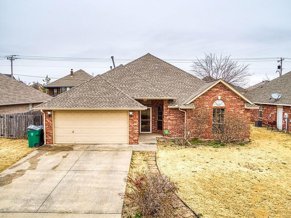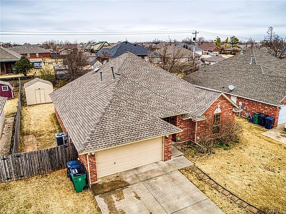 Close to Tinker AFB 3 bedroom, 2 full bathroom plus a study or an extra bedroom. Open living room with fireplace that adjoins the dining room and kitchen. The kitchen has lots of storage space and a nice pantry along with a eat in bar area, stainless appliances. The oversized laundry room has an extra storage closet. Master has his and hers closets, jetted tub with a separate shower. Both secondary bedrooms are nice size... one bedroom is currently set up as a craft/sewing room. Large backyard with all privacy fencing and 2 storage buildings. Storm shelter in the garage floor. Please schedule your sowing today.