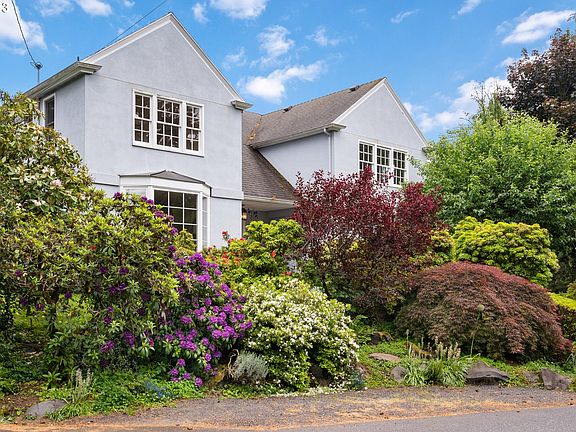 French countryside feel in SW Hills! Dreamy 1940s home that captures the charm of a large French cottage. Set on an expansive corner lot in a lush section of the Southwest Hills offering a tranquil retreat near the city. Huge formal living area, dining room, and kitchen are the perfect setting for memorable parties and holiday gatherings. Lovely vintage details throughout including original windows and beautiful hardwoods. Three spacious bedrooms all on the upper level. Elegant primary has its own private balcony! Basement with laundry offers ample possibilities and storage. Enchanting yard with gorgeous mature landscaping and space to soak up the summer sun. Incredible location near Washington Park, the zoo, hiking trails, with easy access to Highway 26.