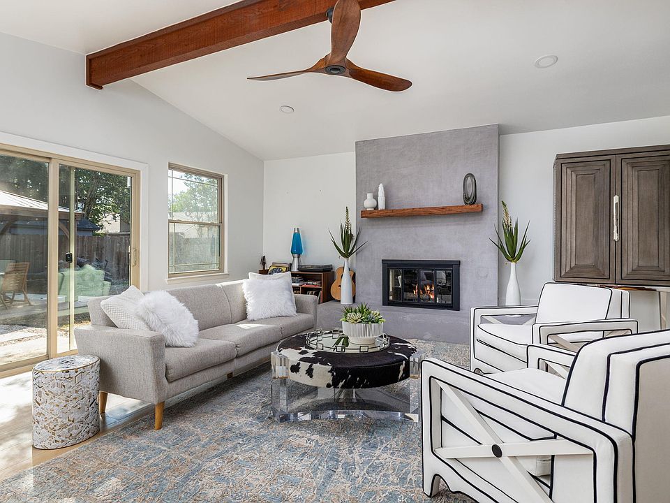Beautifully renovated home in the highly sought after Westcreek neighborhood, just minutes from Whole Foods, Costco, and all the shops and restaurants at Arbor Trails and Westcreek Shopping Center plus lots of eateries and service providers. Close to Mopa/290 for quick access to the airport and to downtown. This move-in-ready Austin home combines designer finishes, open living spaces, and thoughtful updates throughout. Light and bright modern finishes with the warmth of wood accents offer a sophisticated design. Step inside to tall ceilings, exposed wood beams, and wide plank luxury vinyl flooring that gives the home a bright, modern feel. The light filled living room features a Venetian plaster fireplace and flows seamlessly into the updated kitchen with quartz countertops, a pot filler faucet, stainless steel farmhouse sink, pantry, and custom lighting. The spacious primary suite includes dual closets, a sliding barn door, and a spa inspired bathroom with double vanities and a walk in rainfall shower. Each room highlights elevated details, from recessed lighting and tall baseboards to a clean, neutral palette. Outside, enjoy a large private backyard with mature trees, a shaded pergola, and an outdoor fireplace perfect for entertaining, relaxing, or dining al fresco. Located within walking distance to Patton Elementary and Westcreek Park, this home sits in one of Austin’s most established and convenient neighborhoods. Easy access to Mopac and Highway 290 makes getting to Downtown Austin, Zilker Park, and the Barton Creek Greenbelt quick and effortless.