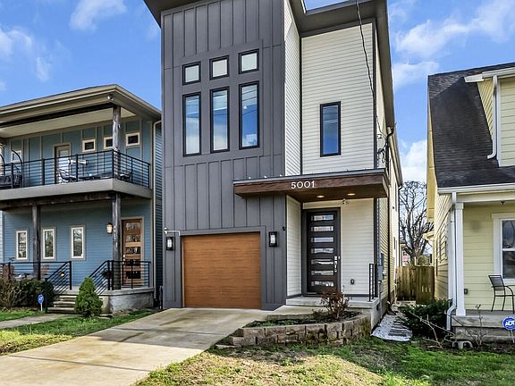 Contemporary home located in the heart of the Nations just 5 miles from downtown Nashville. This true single-family home built in 2015 boasts 10' ceilings with finished hardwoods throughout. All bedrooms located upstairs plus a flex space for an additional bedroom or den. 2 walk-in closets + ensuite bath in primary. Small downstairs office space off the dining room with built-ins. Large windows, new tile kitchen backsplash, wet bar w/ sink + wine fridge, natural gas, & attached one-car garage + ample street parking. Outdoor living space with fully fenced yard thoughtfully designed by Archadeck of Nashville in 2021 & includes a covered, screened pavilion w/ electric, grilling area plumbed with natural gas, turfed yard, stone walkways & firepit. Gated access to alley & front yard. Crawlspace fully encapsulated in 2022. Walkable to Nation's favorites like Frothy Monkey, 51st Deli, Southern Grist, Bringles, Midnight Oil, etc! 1% RATE BUYDOWN THROUGH PREFERRED LENDER!