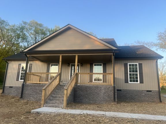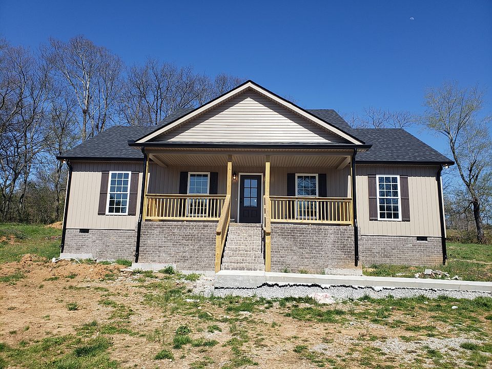 This beautiful new single-story new construction is waiting for you and your family! With 1600 sqft, this spacious open-floor plan is the perfect layout for entertaining and holiday gatherings. 3 large bedrooms, 2 full baths, stainless steel appliances (including a refrigerator), large covered porch, concrete patio in the back yard, over looks farm land behind the property! Lot is 1 acre located outside the city limits. Call for more details!