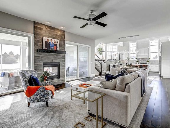 Welcome to this stunning five level 2017 Showcase home. Beautifully appointed on a cul-de-sac lot with a large, maintenance free, fenced yard, landscaping, and an in ground sprinkler system. The cedar and stone wrapped columns on the oversized front porch greet you and lead into the expensive entryway and main level of this fine home featuring 10' ceilings, breathtaking crown molding, and lavish 7" trim, this home is sure to impress. Gorgeous sliding glass doors anchor the stunning, well appointed office. The living room features a double-sided fireplace and opens to an informal dining area. There is a fully applianced kitchen featuring 23' ceilings, custom cement backsplash and custom glass tiles on adjoining bar area, massive windows, and lots of sunshine. A water filtration system was installed for the entire home as well. There is a mezzanine level dining area (currently used as a sitting area) and an additional upstairs loft sitting area which overlooks the kitchen. (Please note the light fixture in the mezzanine level does not stay.) There is a lovely master suite with all the amenities, including a walk-in tiled shower, jetted tub, double vanities and walk-in closet, two additional bedrooms that share a full bath. Additionally there is a private ensuite on the lower mezzanine level for guests. The basement houses a lovely custom bar with stunning lighting and custom antique mirror tiles, family room, spacious bedroom with walk-in closet, full bath, and two storage areas. There is an outdoor, screened-in patio off the main living room with the enjoyment of the double sided fireplace, durable and stylish concrete tile flooring, as well as an additional outdoor patio with a fire pit. This home is great for entertaining, full of style and features modern industrial lighting and banisters. Finally, the oversized three car garage adds to this already impressive home.