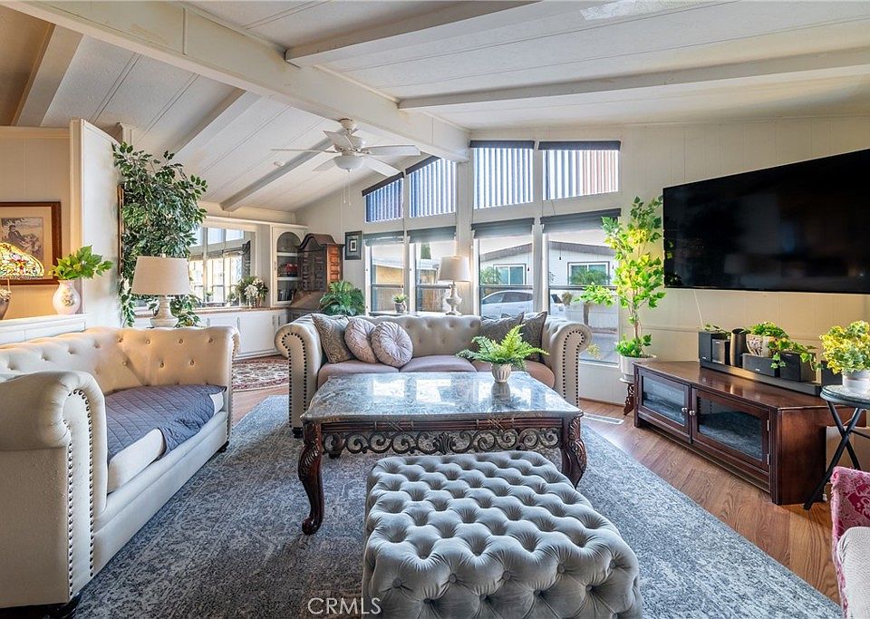 Double-wide mobile home, featuring two generous bedrooms and two well-appointed bathrooms, perfect for those seeking extra space. Step into the expansive living room, showcasing laminate flooring, and equipped with a sleek ceiling fan for year-round comfort. The dining room boasts a built-in hutch, ideal for storage or displaying cherished items, adding a touch of sophistication to your meals. The heart of the home is the kitchen, complete with a unique circular breakfast bar, perfect for casual dining, entertaining, or morning coffee. The guest bathroom offers convenience with a tub/shower combo, while the master bathroom elevates relaxation with a soaking garden tub and a separate walk-in shower.This thoughtfully designed home combines style, functionality, and comfort, making it an ideal choice for modern living. In the gated community of The Lakes of West Hemet, this active 55+ neighborhood offers a wealth of amenities, including a 9-hole golf course, four beautiful lakes, a resort-style pool, clubhouse, pickleball courts, dog park, fitness area, and more.Schedule a tour today to experience it for yourself!