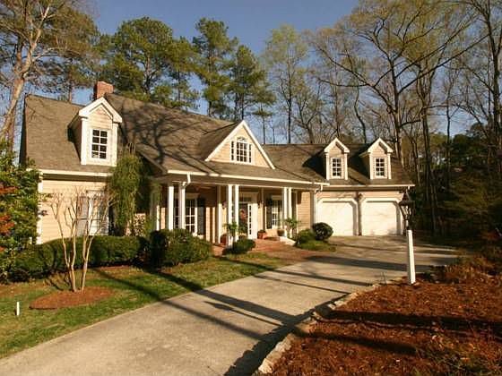 Spectacular views from every room in this spacious floor plan. Hardwood floors thruout 1st floor and most of 2nd floor. Impressive 2 story entry foyer, formal dining room, library/study w/ built-ins, living room + family room. Master bedroom/den. Open updated kitchen with breakfast bar & breakfast nook. Large sunroom overlooking lake. 2nd upstairs master bedroom overlooking lake. 2 generous bedrooms 2nd level. Large updated deck towards the back. Front: circular private driveway around private island. Land-/hardscaped designer garden throughout with two stone patios at the lake. New roof, both HVAC systems new. Wonderful location in gated community w/ Chatham Co. taxes. Close to UNC & Duke!