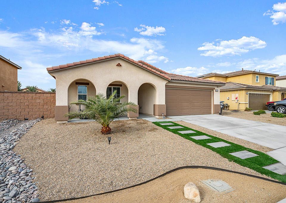 Welcome to this stunning 4-bedroom, 3-bathroom residence, offering an impressive 1,898 square feet of thoughtfully designed living space. As you step inside, you'll be greeted by the expansive kitchen, featuring elegant granite slab countertops that seamlessly flow into the spacious living area with soaring high ceilings. The open floor plan is perfect for entertaining friends and family or simply enjoying daily life.This home boasts durable laminate flooring throughout the main areas, while cozy carpeting adorns the bedrooms, creating a warm and inviting atmosphere. The sellers have put special care into the backyard, providing a blank canvas for you to craft the outdoor oasis of your dreams.Energy efficiency is at your fingertips with included solar panels, helping you save on utility costs while embracing a sustainable lifestyle. Additionally, enjoy the convenience and peace of mind that comes with America's Smart Home technology--an integrated network of Wi-Fi enabled devices from trusted brands, all controllable from your smartphone or the sleek touchscreen panel conveniently located near the entry.Completing this exceptional property is a spacious 2-car garage, providing ample storage and parking. Don't miss your chance to own this beautiful home in Coachella, where modern amenities and thoughtful design come together to create the perfect sanctuary. Schedule a viewing today and start envisioning your future at 50-019 Calle Frontera in Coachella