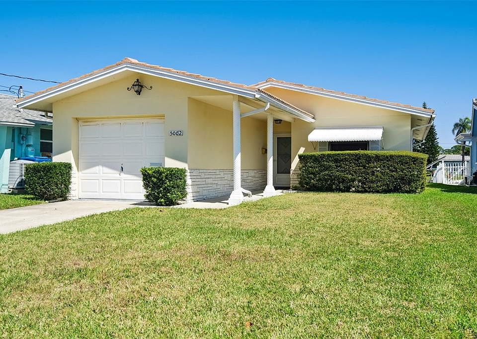 “Hello from Paradise”, is what you will hear from neighbors and friends from Gulf Harbors! This marvelous 2 Bedroom 2 bath 1 car garage home is just the right size for your small visiting family or just the two of you. You get to paint it your colors inside and out, decorate it just the way you want. The bedrooms are considered a split plan and the remainder is very open and plenty of daylight. The kitchen is wide open to the dining/breakfast room. The sun room is perfectly located for morning tea and enjoy the open-air patio, 20’ away is your very own floating dock and the bonus is the davits work for your boat or jet skis. Our 100’ wide canal has had 54’ yachts next door and deep enough for sail boats. The Gulf of Mexico is just a short ride away with no bridges and wide open to some of the most magnificent sunsets you will ever see! You may want to remodel to your own taste or leave it like it is, very livable, your choice. The neighborhood is exceptional, everyone takes very good care of their property and always improving. Your choice to belong to the amazing Gulf Harbors Civic Association and the Gulf Harbors beach club which is private and like non other. We have first served 22 pavilions, new paving, fresh sand as needed, remodeled restrooms, fresh landscaping, commercial pavers, full time guarded gate and all maintained daily. Come join us here in the delightful Gulf Harbors, many will say this is the finest village they have ever lived in and sure enough retire to! Hurry, Hurry before it is too late.