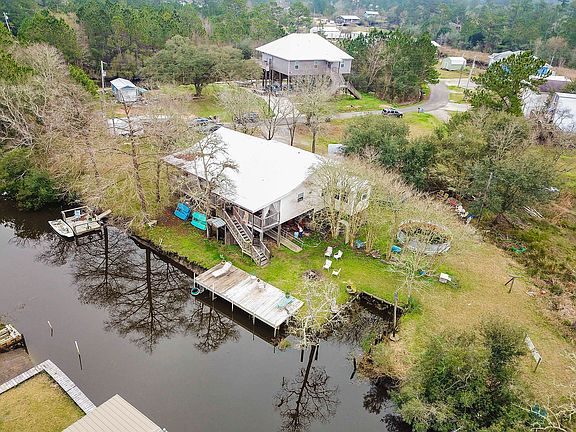 WOW!! 3 Lots & 228'+ of Waterfront sitting pretty just off of Bayou LaCroix. Unique home with 3 bedrooms & 3 bathrooms. 1700 sqft of elevated living space. Outdoor garden space, enclosed tool/equipment storage. Open Concept - Vaulted Ceilings - Sweet Master Suite with sitting/sunroom perfect lighting for creating artwork, relaxing with a book or sharing a bottle of wine via moonlight. Large Covered Porch and Wrap-Around Deck - Private Guest Suite-Screened Patio/Outdoor Kitchen/Bar Area - Boat Dock. Short idle to Bayou la Croix, minutes via boat to The Jordan River or Back Bay. Plenty of indoor and outdoor space for entertaining family and friends. This home has the character and personality that you're seeking. Perfect full time home or family vacation home. Convenient to I-10, Stennis, Slidell, New Orleans, Gulfport. Minutes to the beach and Old Town Bay St Louis.