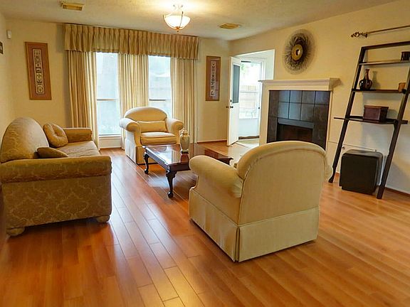 Two story home on large lot in Birnam Wood! Home features two story entry that leads to formal dining room-laminate wood floors in dining, den & master; den w/fireplace; kitchen w/tile floors,gas range,tile counters & backsplash that looks like granite; master suite down w/garden tub,separate shower & 2 sinks. Large gameroom & 2 secondary bedrooms up. Ceiling fans all rooms; neutral colors; all flooring updated 4 years ago. Backyard w/patio & storage shed; sprinkler system; landscaping & more!