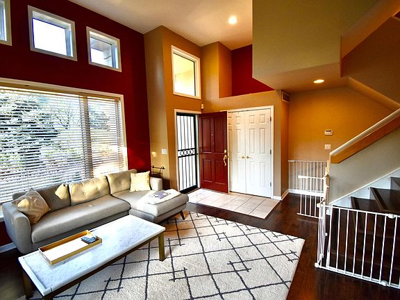 You'll love this open space and high ceilings. Your guests will be impressed with the large and updated kitchen with granite counter tops. The house is filled with natural light and has two patios/balconies. Bar seating makes the perfect space for entertaining while serving food and hosting parties. Enjoy relaxing while watching tv mounted over a gas fireplace. Perfect for football Sundays and cozy winters. Two bedrooms upstairs with laundry room on the upstairs landing. Large master suite with walk-in closet, built-in shelves and attached master bathroom. The master bathroom has a double vanity and a jetted bathtub. Second upstairs bedroom could be considered a second master bedroom. There is bathroom attached and walk-in closet as well. 2 car garage large enough for two SUVs and built-in ceiling storage. Finished basement bedroom with bathroom. Recently updated with hardwood floors throughout the main family room. Conveniently located across from Cherry Creek with walking, running, and bike paths. Check out the many parks and restaurants minutes away around including the Cherry Creek Mall and Restaurants, YMCA, Infinity Park, Cherry Creek Athletic Club, and the historic 4Mile Park with live entertainment in the summer. Easy access to Colorado Blvd and 12 minutes from Downtown and the Pepsi Center. Take a $7 dollar uber to LoDo.