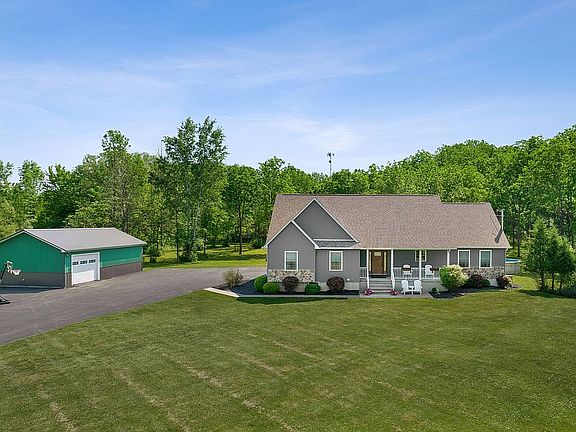 Beautiful 4 Bedroom Custom Ranch Home with an open floor plan situated on 14 Acres. We Offer Buyers Agent Commission. Well manicured property with a vast paved driveway, pond, pool, and large pole barn. Take a walk on the your own private trails and view the matured plot of Black Walnut tree's. This home has it all! Plenty of natural light here. Kitchen with granite counter tops, Kraftmaid cabinets, and Kitchenaid professional stainless steel appliances. Large master bedroom with a custom luxurious master bathroom and walk in closet. Large basement with 9' walls. Wood burning furnace to take the chill off in the winter months and the cozy fireplace. Start and end your day enjoying the park like views of your yard from the comfort of your living room. Don't miss out on this opportunity and schedule your appointment now! Buyers Agent Commission is being offered. All showings will require proof of loan approval.