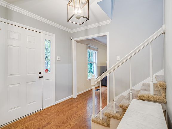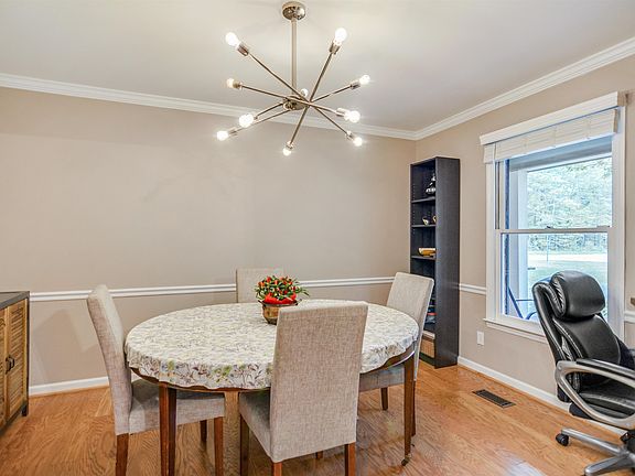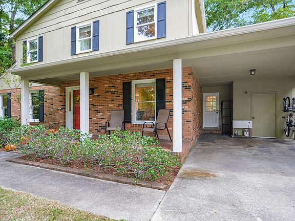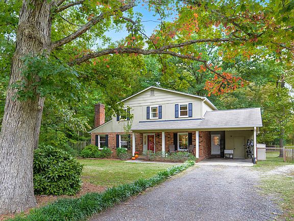 Fantastic traditional style home nestled on .68 acre lot in convenient North Durham location. Hardwoods throughout most of 1st floor. Spacious family room includes masonry wood burning fireplace. Formal dining. Bright & open eat-in kitchen offers freshly painted cabinets, granite countertops, stainless steel appliances (new dishwasher), tile backsplash & updated tile floor. All appliances convey. 1st floor bonus room/flex space with custom barn door. Large primary suite has walk in closet, dual vanity & tile bath/shower. Private screen porch. 2-tiered deck overlooks amazing, flat & fenced backyard with storage shed, covered storage & patio. Great wooded buffer in back. Lots of extras including smooth ceilings, Nest thermostat, RO filter & water softener, new A/C (2018) 1 car carport & wired for generator.