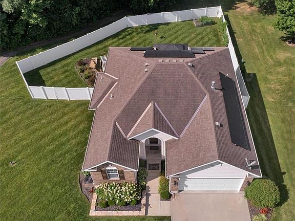 Nestled on a large corner lot, this 4 bed/3 full bath, reverse story and a half home offers space for everyone. The newly fenced backyard is massive and backs to a walking trail and woods with an established garden that can be enjoyed from the large deck with newer gazebo providing plenty of shade. The eat-in kitchen has granite countertops, new high end appliances less than a year old, walk in pantry and overlooks the beautiful family room. This charming home has a finished walk-out basement with 2 additional bedrooms, 2 entertaining spaces and full bath. New solar panels make this home energy efficient year around and the new buyer will benefit from all of the savings $$. Sellers are leaving all tv's and mounts in lower level bedrooms, family room and theater room with surround sound equipment. NO E-Tax!