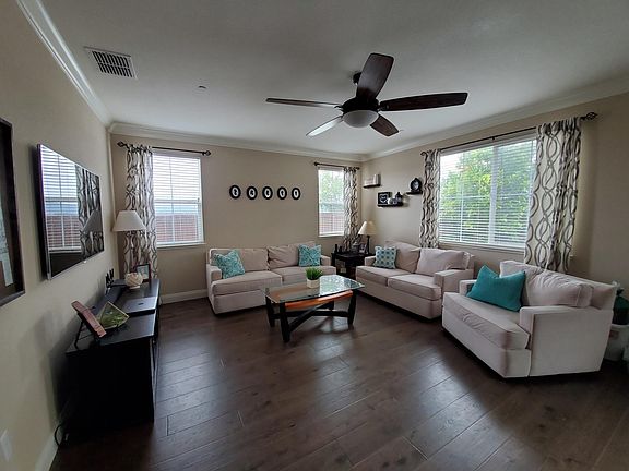 East facing 8-year-old, 2-story house on a corner lot located extremely close to highly rated Dublin Fallon Middle school and John Green elementary school and soon to be Emerald High school. Peet's coffee, Safeway and diverse restaurant options are a walk away. Expansive Emereld Glen Park is around the corner too, perfect for letting your dog run around in, fly a kite, play soccer, basketball, you name it. Going through a hot summer Dublin day, walk over to the Wave and cool off - it has water slides! Summer movie nights at Emerald Glen Park, no need to drive, just walk with your snacks and blankets. The total living space is 2490 sq. ft with a cozy backyard of about 900 sq ft . It has a finished 2-car garage w/ tons of overhead and closet storage. There are 4 bedrooms upstairs, the master with its amenities and 3 other bedrooms - one of which has its own walk-in closet. The 5th bedroom is located downstairs and it has its own bathroom and walk-in closet. Perfect for guests who need their own space and privacy. The kitchen has ample counter space for the chef of the house and a large island, perfect for quaint get-togethers. There is also storage space underneath the stairs that will help declutter the house. Finally the house is on a private circle with a clear view of two empty parcels of land. Renter responsible for all utilities. Renter responsible for minor maintenance of backyard. Deposit is first and last months rent. One Small pet permitted with pet deposit No smoking allowed. Walking distance to middle and elementary school. Close to BART and a Emerald Glen community park. Move-in ready by June 13, 2022