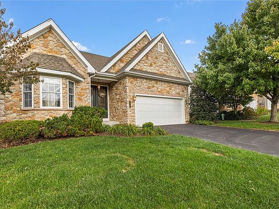 THIS ONE IS SPECIAL! 3 Bedrooms, 3.5 Bath, Wild Cherry Knoll single in gated, 55+community. Updated and modern. 2824 SF on first and second floor with additional finished 1314 SF on lower level. ELEGANT with an abundance of natural sunlight. First floor features 9' ceilings, hardwood floors, foyer with tray ceiling, large Dining Room, big open Kitchen with granite counter tops, island, Wolf gas cook-top, tile backsplash, Fisher & Paykel double drawer dishwasher, wet bar and built-in wine rack, Living Room with floor to ceiling granite fireplace surround, sliding doors to deck from Sunroom and Living Room, first floor Primary Bed, Bath, Laundry, Office, and Powder Room. Second floor LOFT with 2 private Bedrooms and a full bath. Spacious walk-out lower level with Family Room, Office, Full Bath; excellent for exploring hobbies, entertaining, guests, celebrating the holidays, and more. Extra space there when you when you need it, out of sight when you don't. LOW maintenance stone and vinyl exterior, New Roof and New AC 2022. HOA fees include snow removal, lawn care, exterior property maintenance, use of clubhouse, fitness center, pool, tennis courts, group activities, and so much more. Property on edge of development, easy in and out. Corner lot, private backyard. Convenient location with access to walking/bike paths, major roadways, restaurants, shopping, hospitals, and parks to name a few!