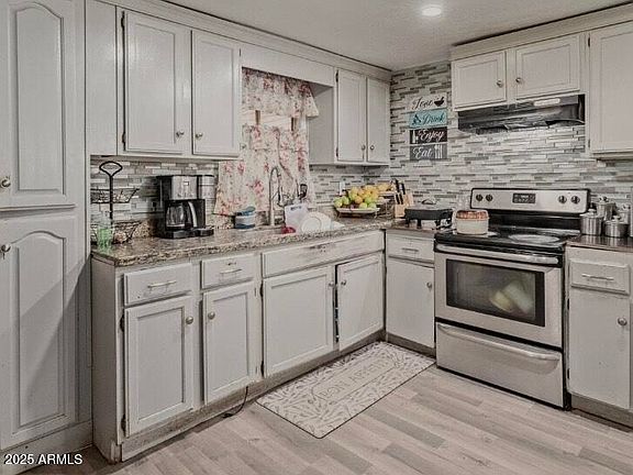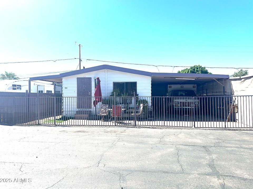 Coming soon on the market in the Flamingo Mobile Home Community - a welcoming 4-bedroom, 2-bath residence! Step inside to find a spacious open layout featuring a bright living and dining area with stylish wood-look flooring and a clean, neutral color scheme that suits any décor. The kitchen stands out with abundant cabinet space, sleek granite countertops, a beautiful mosaic tile backsplash, recessed lighting, and stainless steel appliances ready for your culinary adventures. Each bedroom offers generous closet space, ensuring comfort and convenience for the whole family. Additional highlights include a covered carport and access to the community pool, ideal for relaxing and cooling off during sunny Arizona days. Don't miss this opportunity !Come check it before its Gone!
