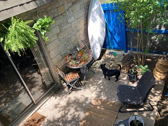 Spacious, bright 1 bedroom, 1.5 bath unit in a fourplex available in the West Gate area near Central Market. The apartment has a shaded fenced patio and a parking space right out front. Pictures show the apartment both with and without a tenant. Better pictures forthcoming soon! The apartment has fresh paint, laminate wood floors and a cute kitchen. There is a loft-style bedroom and a full bath upstairs, with the living area and half bath downstairs. Walk-in closets and great extra storage too! Washer and dryer connections are available in the utility closet on the patio. Privately owned and locally managed! Water and gas paid! NO SMOKING of any kind. Pets are welcome.