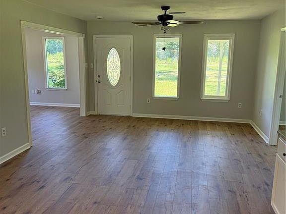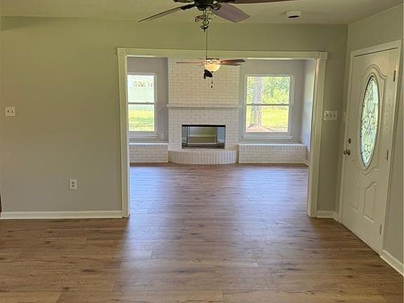 This home sits on a perfect 2+ acre parcel with a huge, fenced back yard. The corner lot allows for versatility for parking and rear yard entry, along with a beautiful setting. Inside, the bedrooms and living area surround the spacious kitchen and dining, offering a split floor plan. The living area features a brick, wood-burning fireplace. Brand new roof, new granite, flooring, and completely repainted inside and out. This home has been well maintained also, making it a great starter home or even an investment. Agent-Owner