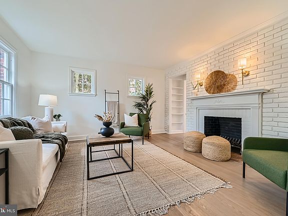 Stunning renovation by Chance Property Group in Historic Homeland! 3 bed, 2 bath end of group Rowhome in Homeland. Hardwood floors, wood burning fireplace, open concept kitchen with seated island, quartz countertops, accented built-ins, white custom cabinetry and stainless steel appliances. Tastefully renovated original bath and an added second full bath. Finished basement is perfect for a playroom, den, or hosting. Fully fenced backyard with a patio, detached garage and a sizeable front porch with porch swing. Plenty of storage and large utility room. Newly added central air and so much more. This top quality renovation is a Baltimore charmer with all the modern updates and is a must see!