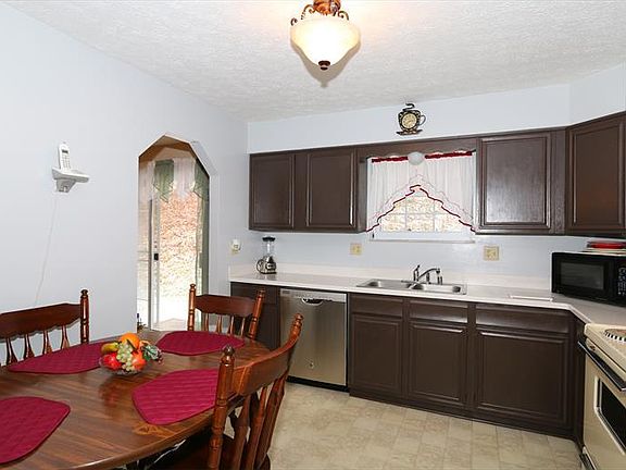 Splendid wooded lot! 3BR, 2BA bi-level design w/ 2 car garage and fireplace. New carpet, new paint, new flooring, dishwasher, stove, refrigerator, microwave, all included. French door lower level walkout. Storage shed, plenty of parking. Neat as a pin. Come on out and take a look!