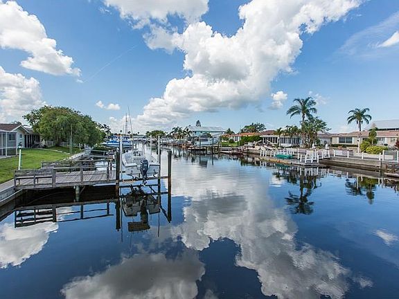 Deep water Gulf Access & sunset views nightly ! This home is immaculate and move-in ready! Professionally remodeled in 2005, updates include barrel tile roof in 2005; new A/C & all new duct work in 2012; seawall reinforced 2017, custom kitchen w/maple cabinetry, solid surface counter tops, an island & built in china cabinets that extend into the dining area & all new paint inside & out. The open floor plan offers waterviews throughout. Master bedroom includes ensuite bath & large walk-in closet. The guest bedroom is spacious & the main bathroom with walk-in shower is located adjacent for ease of access. The Florida room could be a family room, a game room with pool table or even an office; you can make it your own! The home has 18" tile throughout, except the bedrooms which are freshly carpeted. The ceilings are higher than many you'll find in Gulf Harbors. You'll enjoying watching the sunsets from your spacious covered patio! According to a reputable pool contractor, there is room for a pool at this house, just not a cage due to setbacks from the seawall. All or part of the covered back patio would have to be used to add the pool if desired. Just minutes from the open Gulf with no bridges or obstructions. 24 hour Deep Water Gulf Access to the most beautiful beaches you can imagine. A boater's paradise! Realtor is related to owner. Call today to schedule your private showing of this little piece of Florida paradise.