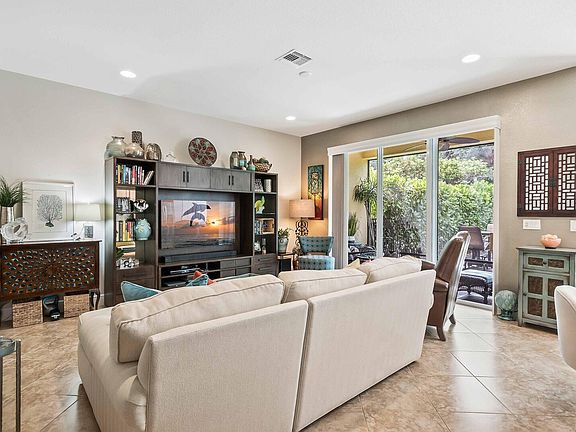 A perfect 3 bedroom 2.1 bath home in the private gated community of Paloma in Palm Beach Gardens!. This beautiful light filled town home has neutral ceramic tile floors on the lower level and luxurious carpet throughout the upper. The main bedroom suite is very large with his and her closets and a completely renovated bathroom. The backyard is very large with a screened in Lanai, that overlooks a two tiered paver patio and a gorgeous professionally landscaped tropical oasis. You and your guests will love the resort style community swimming pool walking distance from your new home. This well appointed home has impact glass, an epoxy painted 2 car garage floor, brand new built-in microwave oven and much more!!