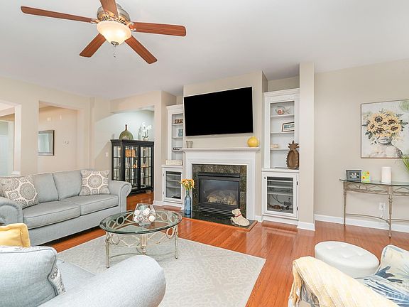**NO SHOWINGS UNTIL 6/3/2023.** Leave all your worries behind! This immaculate home includes lawn maintenance, and all rooms on one floor for easy living! New roof in 2020! Large kitchen with tons of storage, neutral colors, SS appliances, gas range, large pantry, and generous eat-in area. Enjoy an expansive living room with gas log fireplace, built-ins and beautiful hardwood floors that lead into the dining area with trey ceiling, chair rail and space big enough for large family gatherings. A split bedroom plan boasts a generous primary bedroom and bathroom at the front of the house, and two well sized additional bedrooms and full bathroom at the back of the house. Walk through the laundry room to the 2-car attached garage. Don't miss the screened in patio just off the kitchen for great outdoor entertaining space!