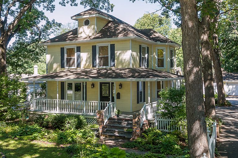First time on the market in 26 years! Looking like a home straight out of the cinema, complete with a wraparound porch. If you don't fall in love with the yard from the get-go, the inside of the home will surely win you over. Nestled in the trees and sitting on over half an acre of landscaped lawn. All the updates have been done to make this a modern home with classic charm. Main floor features a large living area, eat-in kitchen with fireplace and a formal dining room. Hardwood floors with tile. Remodeled kitchen with Venetian plaster walls, granite counter and a pantry with custom California Closet shelving. The great room opens out to the brand NEW patio complete with composite decking. Winding staircase takes you up to the 4-bedroom second level. Enormous master bedroom with walk-in wardrobe featuring California Closet shelving and pocket doors. Master bath features tile shower, granite counter and jet tub. Guest bathroom has been remodeled and still has the claw foot tub. Finished
