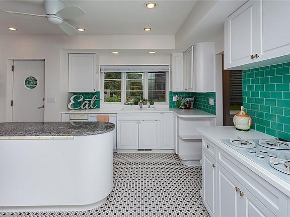 An extraordinary & unique mid-century modern 2-story in Waterbury designed by architects Kraetsch & Kraetsch, who designed the famed Butler Mansion on Fleur. This "Baby Butler" boasts 3,988 sqft of architectural delights w/ curved glass block wall, hardwood floors, circular staircase, original light fixtures & tons of natural light. The open floor plan is perfect for entertaining w/ 2 spacious living areas each w/ own FP, built-ins & glass block features. An updated kitchen offers abundant cabinetry, LG appliances, pantry, island & breakfast bar that leads to eat-in area w/ sliders to the partially covered slate outdoor living space. A butler's pantry/bar off the other side of the kitchen leads to the formal dining room. Upstairs relax in a luxury master suite w/ FP, built-ins, two walk-in closets, dual sinks & soaker tub. 3 addtl. large bdrms, a 3/4 bath, kid's loft/play space & laundry also upstairs. Many updates: new dual zone HVAC, hot water heater, Pella windows & heated garage.