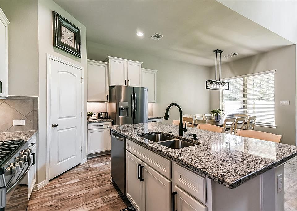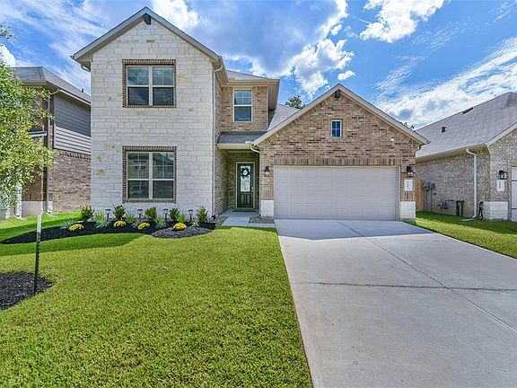 Immaculate home less than one year old in desirable Hampton Creek, fully covered by builders warranty through February 2021!!!!! Gorgeous brick and stone elevation on prime lot backing up to reserve. No rear neighbors!!! Pristine open floor plan with soaring ceilings, tons of natural light, beautiful flooring, kitchen with breakfast bar open to family room and a generous sized game room open to first level. Custom built brick and mortar fire pit and flower boxes added after construction. Zoned to accredited Klein ISD with tons of neighborhood amenities; pool, splash pad, park with playground equipment, covered picnic tables and sidewalks throughout neighborhood! Convenient location within minutes to Grand Parkway makes for easy commute!