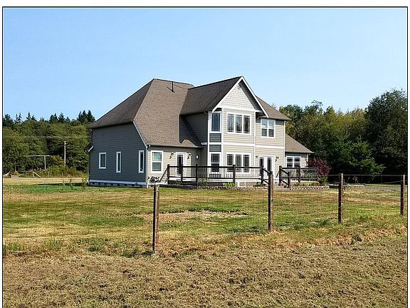 Gated custom-built home PLUS Barn/shop with studio/office/craft room upstairs. Geothermal heat/AC pump for low bills, custom cherry cabinets throughout, vaulted ceilings very bright and light. Living room is 2 story great room with wall of windows with Southern exposure, propane brick fireplace, formal office with coffered ceiling, double glass doors off the main entrance coffered ceiling, built-in granite top work space, custom cabinets, and view of gated entrance. Ground floor master and bath with jetted tub, shower, double sinks and two closets, private door to deck. Dining area and gourmet kitchen with granite counter tops, large pantry, Laundry room, and half bath. Two bedrooms and full bath upstairs as well as large attic storage area at top of staircase landing. Attached 2 car garage. Detached two car garage includes large storage areas, workshop with bench and 220 volt circuits for your power equipment, including horse stalls, large chicken coop with nest boxes and rear access to nest boxes, additional auto parking in adjoining carport. Upstairs studio/office/craft room with full bath, counter top with sink for your coffee service. 5.1 acres of level pasture, fenced and cross-fenced into 5 pastures. Home is conveniently located 4 miles from Poulsbo and 4 miles from Kingston ferry. Seller financing available with substantial down payment. Will pay selling brokers 2.5% commission.