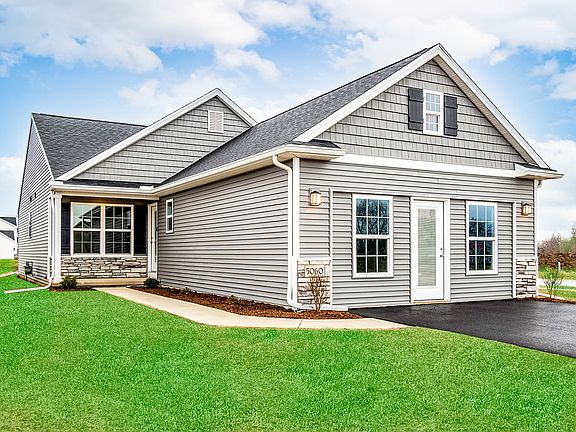 New Construction single family villa with a 2 car garage and sunroom. Open floor plan with vaulted ceiling over kitchen island, dining and living room area. Master bedroom suite with walk-in closet. White shaker-style cabinets, quartz countertops and stainless steel appliances. First floor laundry. HOA fee of $100 per month provides lawn care and snow removal services for a low-maintenance lifestyle.