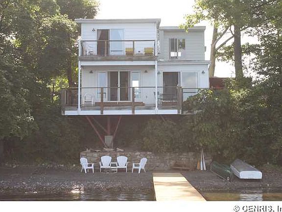 Peaceful Paradise!!!! Enjoy the Sunrises and Panoramic Views from this Charming Turn-Key Immaculant Lake Home on the West Side of Seneca Lake in a Private Neighborhood, 2 separate units with great rental history, could easily be converted to one! Currently used as income generating property. New built-in AC units & hot water heater. 60' of beautiful shale lakeshore with new DOCK! Two levels of decks, everything inside goes along with the sale including the boats!!!