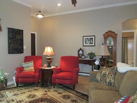 Like new only Better ! Pretty entry, nice size living area with corner fireplace that has gas logs, open to kitchen with breakfast bar, and dining area large enough for table and eight chairs. This 3 bedroom home has a split master bedroom design ,the master has a tray ceiling and huge walk in closet with tons of shelves and storage. The master bath has 5 ft shower and double sinks. All light and plumbing fixture are oil rubbed bronze .The two guest rooms are roomy with good storage in closets. Hall bath has tub/shower combo. The back yard with wood privacy fence and covered patio plus the owner add more patio space.