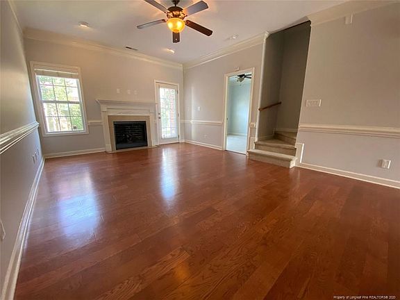 Beautiful townhome is in a Gated Community with a swimming pool, picnic areas, walking trail, and a fitness center! Lawn care is included. 3 bedrooms and 3 full baths with many upgrades to include: beautiful hardwood floors, granite countertops, stainless steel appliances, built in surround sound, tile shower, ceramic tile in bathrooms/laundry, and crown molding. Large unfinished storage area on the 2nd floor (not included in sqft). Plus, 1 car garage. Backyard includes green space and a private patio/ grilling area. House is just just across from the community pool.