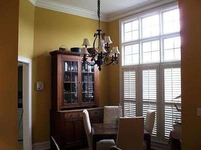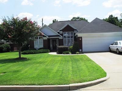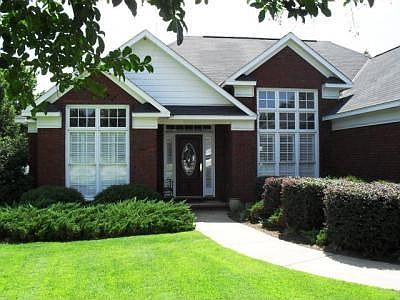 Split bedroom plan--roomy master with sitting area, master bath w/dbl sinks, sep shower & walk-in closet, tub w/jets. Hardwood in open foyer & dining area. Spacious greatroom with stately fireplace, decorative mantle, marble accents & gas logs. Various ceiling heights w/extra molding and wood blinds thru out. Lge covered brick porch w/view of swimming pool, privacy fenced backyard. Brick walkway to brick workshop/storage house. Needs some TLC--selling AS IS. Near hospital, shopping,& Columbus.