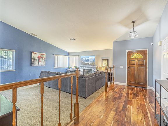 This beautiful home is ready for its new family! With 3 bedrooms, 2 bathrooms, 1,868 sq. ft. of living space and OWNED solar panels, this home is move in ready. The home has beautiful flooring that is water resistant throughout the living areas and 1 bedroom. The living room has a lovely fireplace and plenty of room for the family to enjoy. The kitchen has ample counter space with granite countertops, dual ovens, a breakfast bar and pantry. The master bedroom is nicely sized with a ceiling fan, walk in closet, and private bath. The master bathroom has been completely remodeled with new countertop, sink and walk in shower complete with waterfall head and 4 body sprayers. The 2 secondary bedrooms are large with ceiling fans. There is a bonus sun room that has a pool table and views of the backyard. The backyard has turf on one side, a dog run and is ready for your imagination to make complete. There is also a water softener system. Make this your new home today!