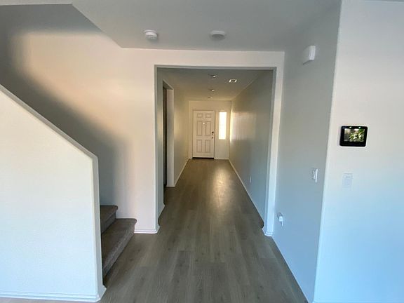 The First Floor: Upon entry, you are greeted with a long hallway that meets the bathroom, a storage closet and garage access. At the end of the hallway, you will be welcomed by a bright gorgeous open floorplan in the kitchen, dining, and living room area. Sliding doors that lead to a large desert scaped backyard. The perfect area for you and your guest to enjoy dinners, games, movies, or overall entertainment. The dining area offers a ceiling fan with dimmed lighting and the living room offers a ton of ceiling lighting that can also be dimmed.