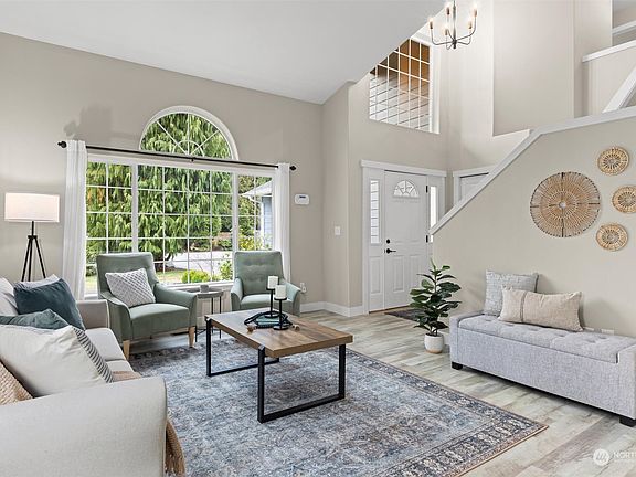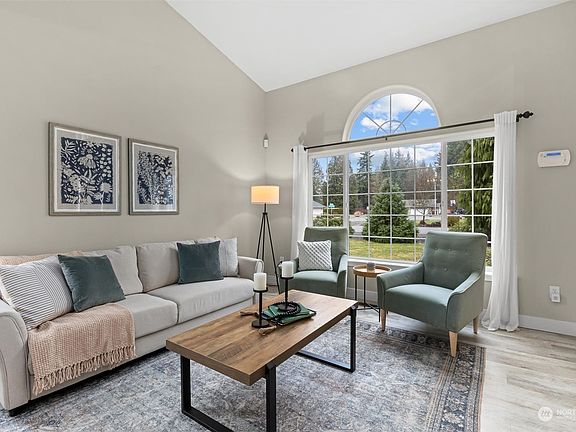 Beautifully updated 4-bedroom home in coveted Kackman Creek. Massive flat half-acre corner lot. Main level with vaulted ceilings is flooded w/ natural light. Sprawl out across multiple living areas, dining room, and a warmly remodeled kitchen. Large back deck—partially covered!—w/ built-in seating, skylights & open to the large yard, great for entertaining! Fire pit, fenced garden area & RV parking. Back inside for AC! Freshly painted interior. Primary bedroom sports luxurious bath remodel w/ heated flooring, walk-in rainfall shower, free-standing soaking tub, quartz double-vanity, & walk-in closet. 2 big bedrooms upstairs + 4th bed/office on main. Over 50 acres of private community trails. Just 5 min to I-5 & historic downtown Arlington!