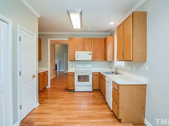 This Raleigh two-story offers hardwood flooring, a fireplace, and a two-car garage. Upgraded features include fresh interior paint and new carpeting in select rooms. This home is a part of the Amberfield homeowner's association.