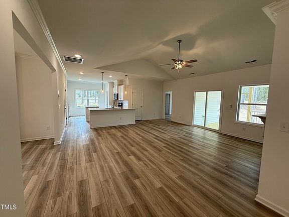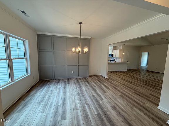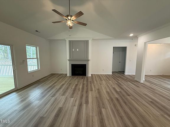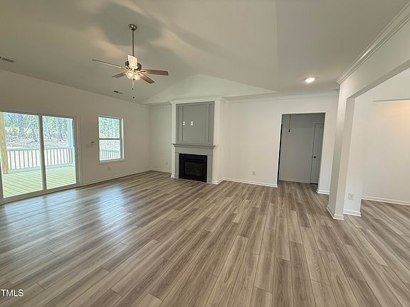Introducing the stunning Wisteria II Plan, situated in the newly developed Rosinburg Glen, crafted by Great Southern Homes! This highly sought-after ranch-style home is nestled on a sprawling 3+ acre homesite. The home features upgraded LVP flooring and crown molding throughout, adding elegance to every room. The gourmet kitchen is a chef's dream, showcasing ''Desert Silver'' quartz countertops, custom white-painted cabinetry, a herringbone mosaic tile backsplash, a center island with barstool seating, and stainless steel appliances, including a smooth top range, microwave, and dishwasher. The kitchen also offers a spacious walk-in pantry. A separate dining area provides an ideal space for meals. The owner's suite boasts LVP flooring throughout and a generous walk-in closet. The owner's bath includes a dual vanity painted in ''Stone Gray'' with a ''White Sand'' quartz countertop, a walk-in shower, and a separate soaking tub for ultimate relaxation. The open-concept family room is perfect for entertaining, featuring a gas log fireplace with a black slate surround, a custom trim mantle, and access to a rear-covered patio.