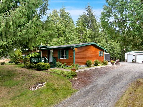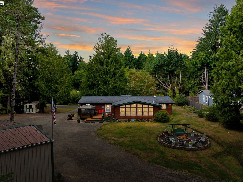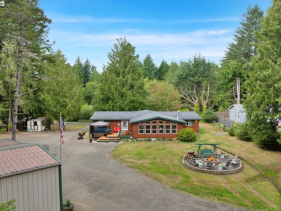 Charming South Lakes area home with income opportunity! Welcome to this inviting & well-kept home, perfectly positioned for both tranquility and convenience. Just a short distance from Cleawox Lake and surrounded by several other lakes, this property offers a peaceful retreat in a picturesque setting. At the same time, you’re only minutes from Old Town Florence, the Siuslaw Dunes, and the many recreational opportunities of the Siuslaw National Forest. This thoughtfully designed home features a spacious, open floor plan where the large kitchen seamlessly flows into the living and dining areas. A newer Bosch dishwasher, updated microwave/convection oven/air fryer, and abundant storage make the kitchen both stylish and functional. The primary suite includes a generous walk-in closet and an updated bathroom, while the second bedroom offers a large double closet. A versatile den/office with extensive built-ins can serve as a third bedroom if desired. The updated hallway bathroom, large laundry room, and excellent separation of space provide everyday comfort and convenience. Recent updates include new luxury vinyl plank flooring, fresh interior paint, and a striking wood-burning fireplace with a masonry surround that adds warmth and character. Outside, enjoy a park-like setting with mature landscaping, a spacious deck, and a large hot tub with power cover. The rear fence is creatively designed to resemble a western movie set, adding a unique touch to the property. Additional amenities include a 20x40 shop/garage with extra parking and storage, a detached ADU/bunkhouse, and a carport. For RV enthusiasts, the property offers three RV hookups, an RV dump station, and ample parking. Whether you’re looking for a full-time residence, vacation getaway, or property with income potential, this South Lakes gem combines comfort, functionality, and location. Don’t miss this amazing opportunity!