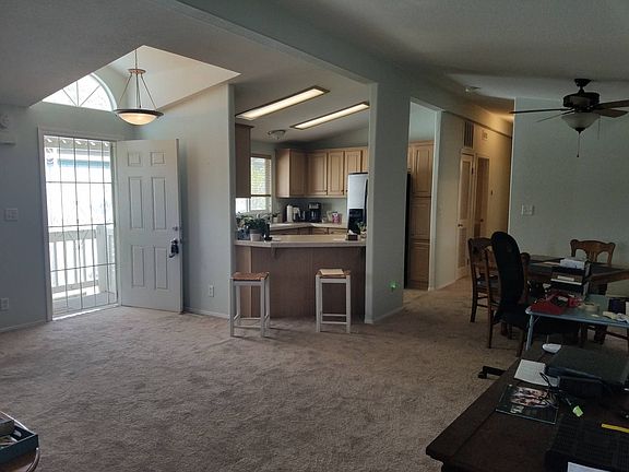 How soon do you want to move? Tucked away in 5 home private Cul de Sac in the Cliffs Senior Mobile Home Park is this Beautiful 2005 Goldenwest Manufactured Home. 1200 square foot two bedroom, two bath with gorgeous views of Mission Gorge, Admiral Baker Golf Course and the San Diego River! Your own personal paradise features a handicap ramp up to the front door and wrap around deck with views to the north and east. Front and rear security doors, vinyl windows, vaulted ceiling with an east facing dormer and up lighting, 3 ceiling fans, bright kitchen with plenty of storage and a welcoming floor plan. Newer whole house interior paint, neutral carpet and widow treatments. The guest room and bath are great size but the master bedroom is huge - bring your King sized bed and clothes for the walk in closet! Washer, dryer, refrigerator and shed all convey to the new owner. LBH8281
