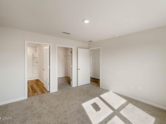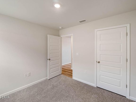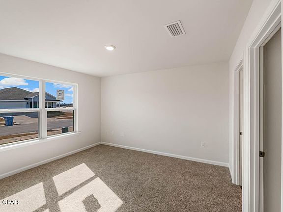Upon entering the Aldridge floorplan, you immediately notice the bright entry way afforded by the prairie door. This 3-bedroom 2 bath, 1272 square foot home is an open floorplan. The primary bedroom and bathroom are located off the entry at the front of the home. The primary bathroom has double sink vanity, large shower, and a huge closet. Proceed down the entry hallway passing the laundry area as you enter the kitchen, dining, and family area. The kitchen has a center island with space for bar seating. Titus Park is located in Panama City, Florida and only minutes away from Tyndall Air Force Base! This large scale, multi-phase community is centrally located off Highway 390 and just north of Highway 231 and is surrounded by a multitude of shopping centers, restaurants, and is only minutes from the North Bay and St. Andrew's Beaches.