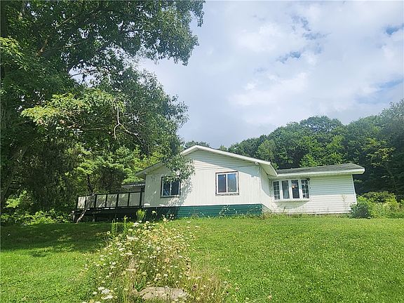 Check out this country charmer! This ranch home is perfectly situated upon the hillside on just under 2.5 acres. Set back off the road, this property boasts a peaceful and scenic yard with plenty of room to relax and play. Much larger than it looks, featuring a spacious and updated eat in kitchen, semi-open floor plan to the living room, additional den, all first-floor living, vinyl windows, a gas fireplace and new well system (2019). Sit out on the front deck and admire the wildlife and tranquility while sipping your morning coffee. Country living while being conveniently located. Just 18 mins to Olean and 25 minutes to Bradford. A great home with so much potential. Schedule your private showing today!