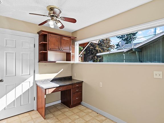 Bright, beautifully maintained, and full of character, this one-level Portland home offers easy living and thoughtful updates throughout located in Faxon park neighborhood known for its quiet atmosphere. Enjoy a refreshed interior with abundant natural light, large windows, and fresh paint. The kitchen features stainless steel appliances, plentiful cabinetry, and a built-in microwave. Optimized utilization of space with built-ins adding charm, ceiling fans, and a seamless flow to the covered patio and spacious, fully fenced backyard — ideal for relaxing or entertaining & those fall fire pit moments. Third non-conforming bedroom/bonus/flex space is detached with an optional side gated entrance. Recent upgrades include a new 50-year roof (2024), new electrical panel (2025), and a newer water heater. The large shop (roof new in 2020) provides great workspace and extra storage. Ample driveway parking and fiber cement siding add to the appeal. Located just one block from Bloomington Park and an elementary school, with easy access to I-205 and public transportation. A wonderful opportunity for one-level living in a convenient SE Portland neighborhood! [Home Energy Score = 2. HES Report at https://rpt.greenbuildingregistry.com/hes/OR10028658]