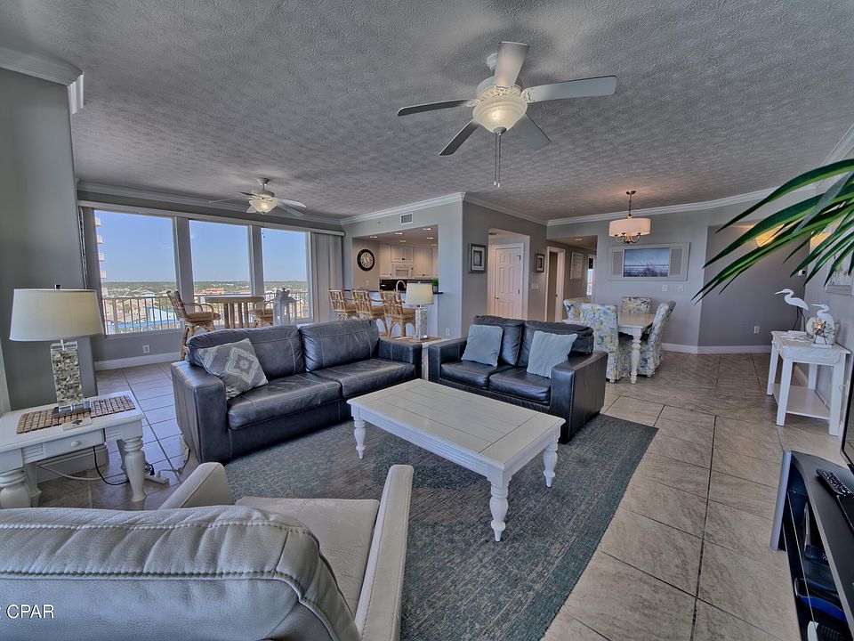 Beautiful unit overlooking the World's Most Beautiful Beaches. This unit features a wrap balcony with approximately 849 sq ft of balcony that overlooks the entire beach.Panoramic view of the East and West end of the beach, St. Andrews Bay, Grand Lagoon, Gulf of Mexico and the pass. This three bedroom, two bath unit has a wrap around balcony, all three bedrooms have access to the balcony. One of the best views in Panama City Beach! 9' ceilings and crown molding, as well as granite countertops and an unusual amount of closet and storage space throughout the unit. All information is believed to be correct, but should be verified by purchaser.