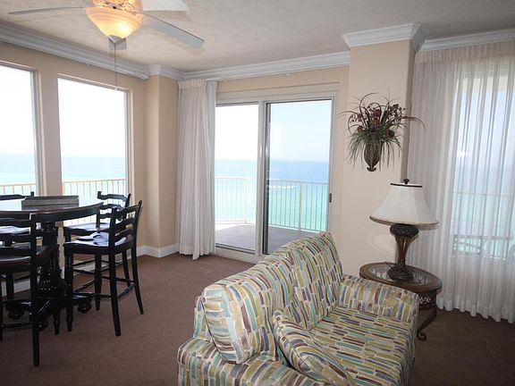 Don't forget to watch the Virtual Tour. The perfect floor with the perfect view. You can view the entire beach from this beautiful unit. The wrap around balcony gives you a panoramic view of the Gulf, Bay, Lagoon, St Andrews State Park. You can watch the ships and fishing fleet as they go through the pass. The complex is oriented on the beach in such a way that gives you a full view of the west and east beaches. This unit has granite counter tops, cultured marble vanity tops. All three bedrooms open to the balcony. All information is believed to be correct but should be verified by the Buyer.