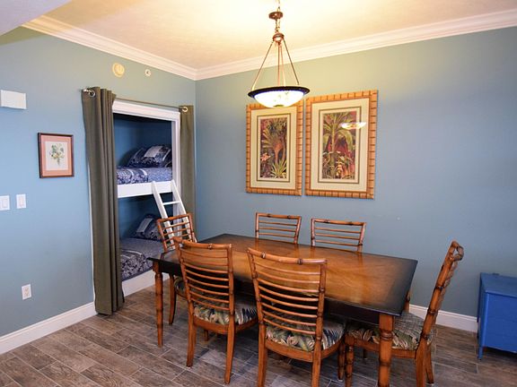 Great priced two bedrooms, two bath condo with bunks. at Treasure Island. Located on the east end of the beach close to the State Park. Well known for their large balconies, ten-foot ceilings, and low HOA fees. This unit has been updated with new tile throughout. The living room and the Master bedroom are on the gulf side with beautiful views of the state park and the sunsets.Enjoy the Great views from your over sized balcony.Owner is relocating bring your buyers today...