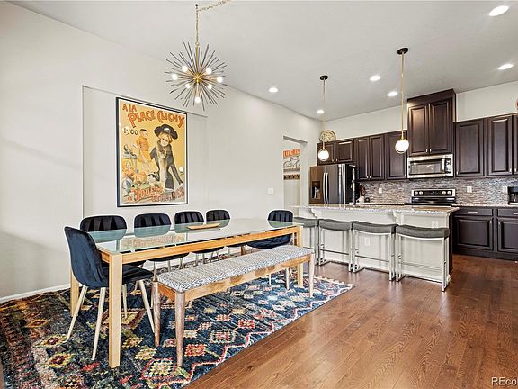 Enjoy luxury living with this stunning Westminster home boasting a blend of farmhouse charm and modern amenities. A living room wrapped in natural light affords a serene space for relaxation with indoor-outdoor connectivity to the balcony where generous mountain views await. The open floor plan is perfect for entertaining and flows seamlessly to the dining area and gourmet kitchen with stainless steel appliances and a spacious center island with seating. Retreat to the primary suite, a haven of tranquility nestled beneath a tray ceiling that adds extra dimension. An en-suite bathroom and customized walk-in closet cater to comfort and convenience. New luxury vinyl plank flooring flows through the sunlit garden-level basement and features a second living area, office nook, and an expansive guest bedroom. This peaceful community promotes easy living with a golf course, pool and clubhouse and exterior maintenance and snow removal covered by the HOA. Active residents will love the access to open space, biking trails, and the Westminster Rec Center.